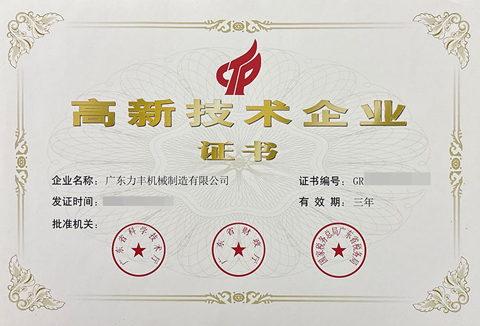 廣東力豐機械制造有限公司于2016年成為國家高新技術(shù)企業(yè)
